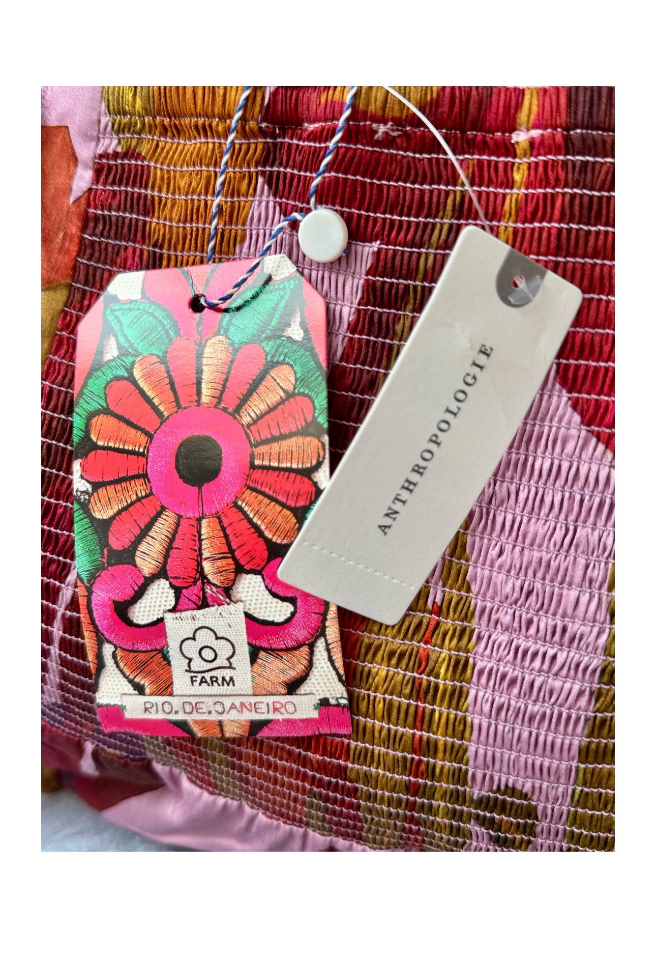 this mini dress by Farm Rio features a flattering square neckline, puff sleeves, and a smocked back, creating a feminine and form-fitting silhouette with a touch of playful elegance.